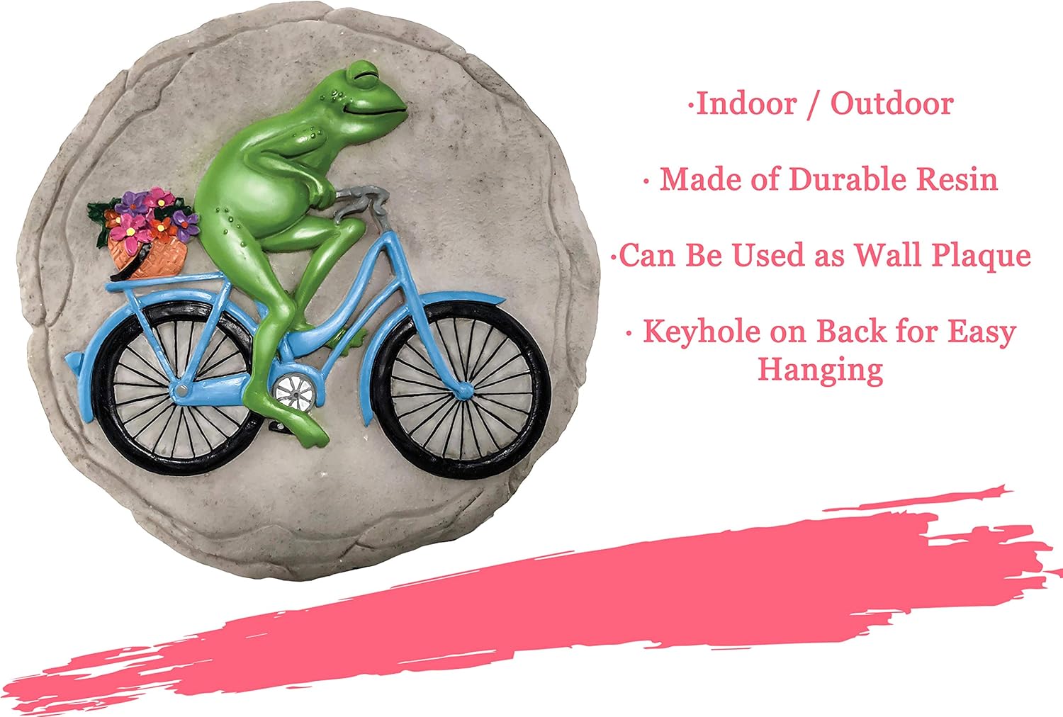 Spoontiques - Garden Décor - Frog on Bicycle Stepping Stone - Decorative Stone for Garden