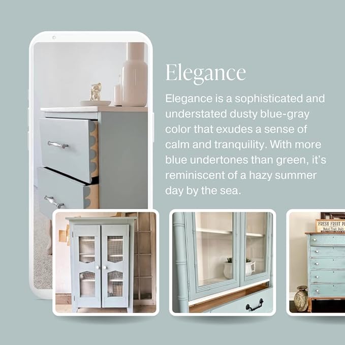 Country Chic All-in-One Chalk Paint for Furniture, Cabinets, Home Decor, Eco-Friendly, Matte Finish, Built-In Primer & Top Coat for Wood, Metal - Elegance (Dusty Blue) - Pint 16 oz (475 ml)