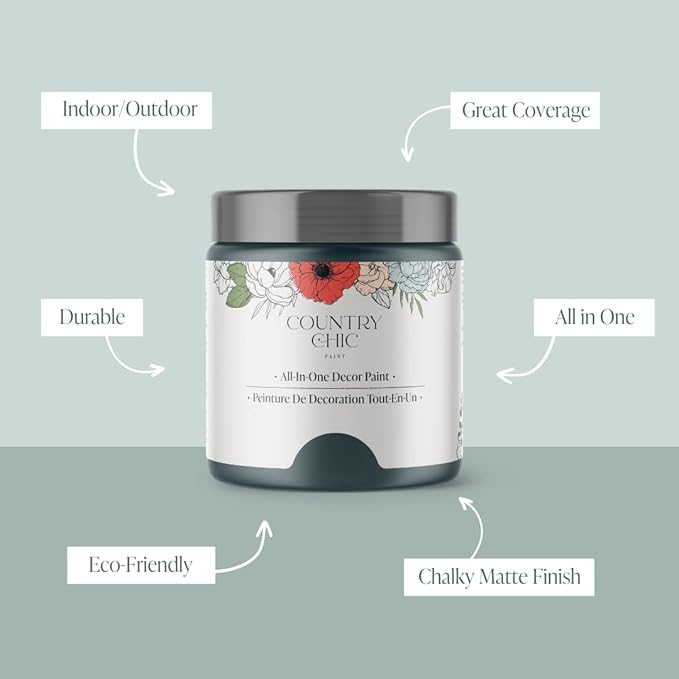 Country Chic All-in-One Chalk Paint for Furniture, Cabinets, Home Decor, Eco-Friendly, Matte Finish, Built-In Primer & Top Coat for Wood, Metal - Jitterbug (Dark Teal) - 4 oz (118 ml)