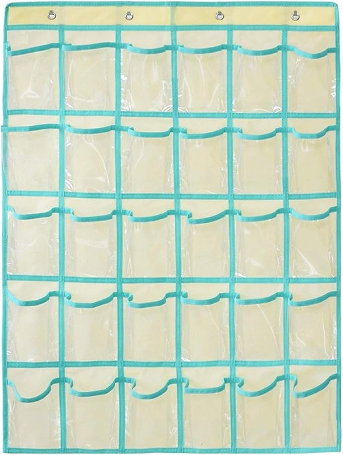 Classroom Pocket Chart for Phone Calculator Holder Over The Door Hanging Closet Jewelry Organizer with 30 Clear Pockets (BEIGE)