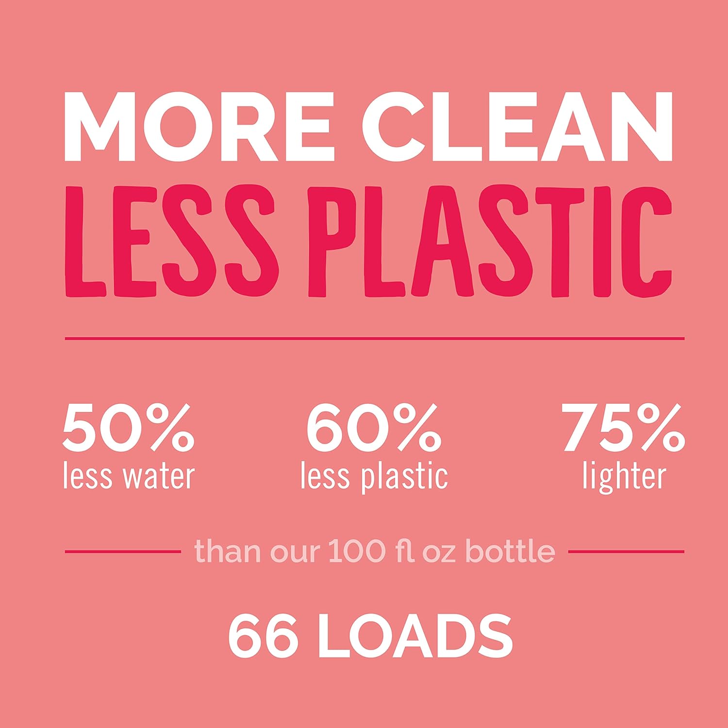 - Small dose, big clean: 60% less plastic, 50% less water, and 75% lighter than our 100 fl oz bottle.
