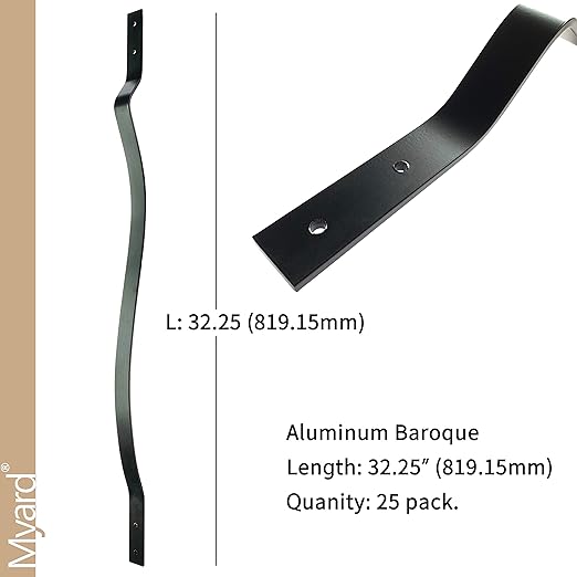 Myard 32-1/4 Inches Aluminum Deck Balusters Furniture with Screws for Facemount Railing Fencing, European Baroque Silhouette Wrought Style (25-Pack, Matte Black)