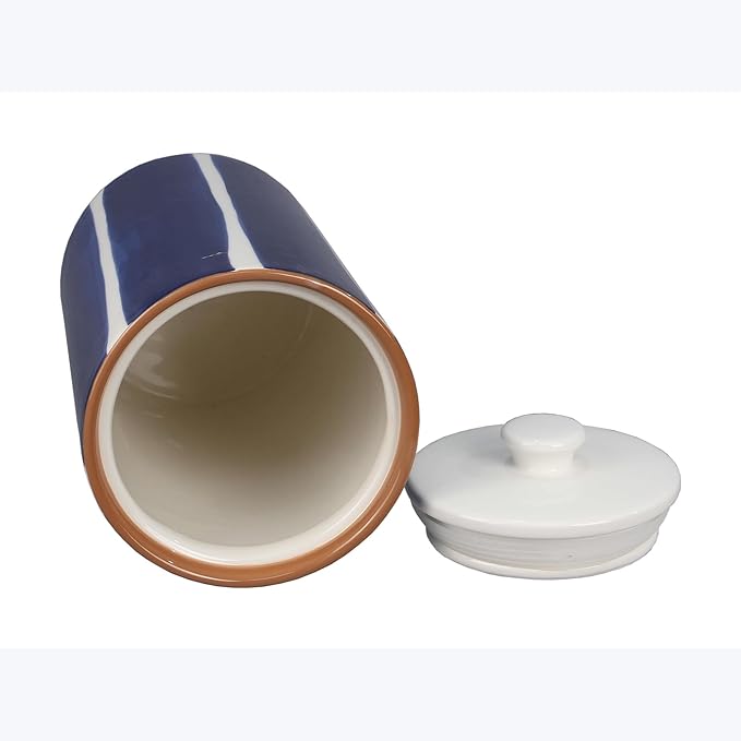 Young's Inc. 4 Pcs Set Cylindrical Ceramic Canisters- Storage Container for Kitchen and Bathroom - Beautiful Home Decor Accent to Store Food, Coffee, Tea, and More - White, Blue