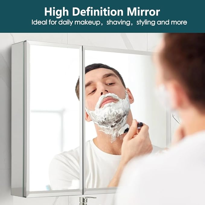 - HIGH-QUALITY ALUMINIUM CONSTRUCTION: The design of the medicine cabinet is aluminum construction with a durable polished finish. This mirror cabinet can be perfectly used in kitchen, bedroom, living room and small space to organized your medicines and other sundries.