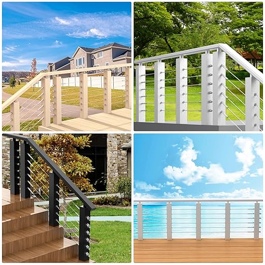 - 【Applications】Perfect for planning your own cable railing project, easy to install and provides a stylish and contemporary finish to any project, whether used indoors or outdoors, residential or commercial. 1/8" stainless steel wire rope is visually sleek and particularly strong, allowing for thinner diameters that better keep your view open without comprmising safety. Cable railing system requires hardly any maintenance.