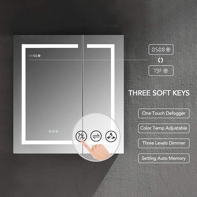 - Smart Sensor & Memory Features: Equipped with a smart memory function that saves your preferred brightness and color temperature settings. The door sensor automatically activates the LED lights when opened, and the interior includes dual power outlets and USB ports for convenient charging of electric toothbrushes, shavers, or smartphones.