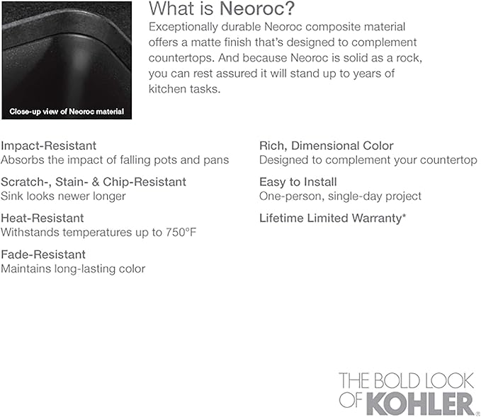 - Apron designed to fit in standard 36-in apron-front cabinetry