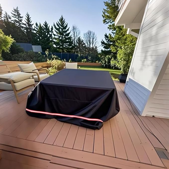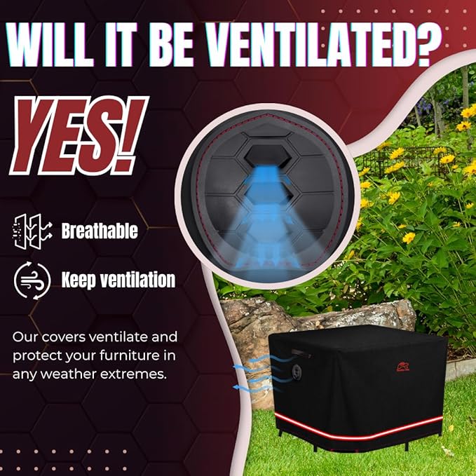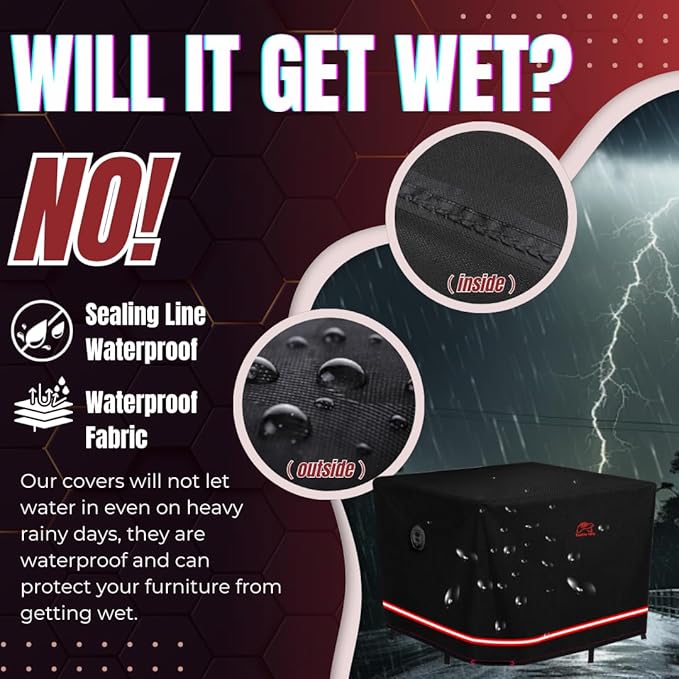 - 【Dimension and Premium Material】- measures: 76"(L) x 76"(W) x 29"(H). Heavy-duty Oxford with new upgrade PVC coating. Fits any square outdoor furniture, such as dining table and chairs, benches, coffee tables, couch, or other rectangular furniture. Please confirm the measurement of your furniture before purchasing.