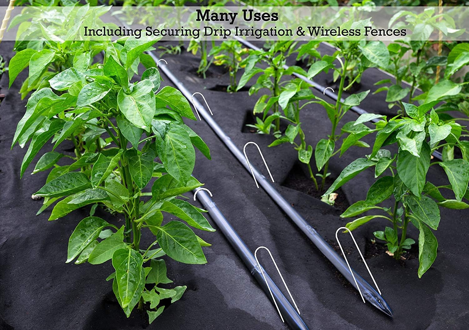 - GALVANIZED CONSTRUCTION delays rusting process and provides countless uses including securing weed barrier fabric, pet containment systems, drip irrigation systems, erosion control matting. Want to reuse them? No problem - pull them out of the ground and use them for a different application