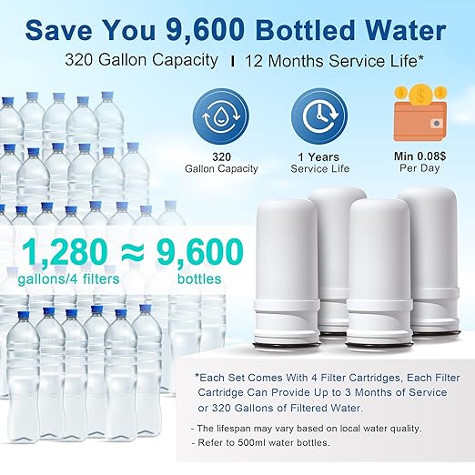 - HIGH FLOW RATE - EFFICIENCY WITHOUT COMPROMISE: Quench your thirst in record time. Our innovative design ensures a high flow rate of 0.5gpm, delivering up to 320 gallons of filtered water. It’s the epitome of efficiency, providing you with immediate access to pure water without the wait. Perfect for the fast-paced lives of today, where time is precious, and quality is non-negotiable.