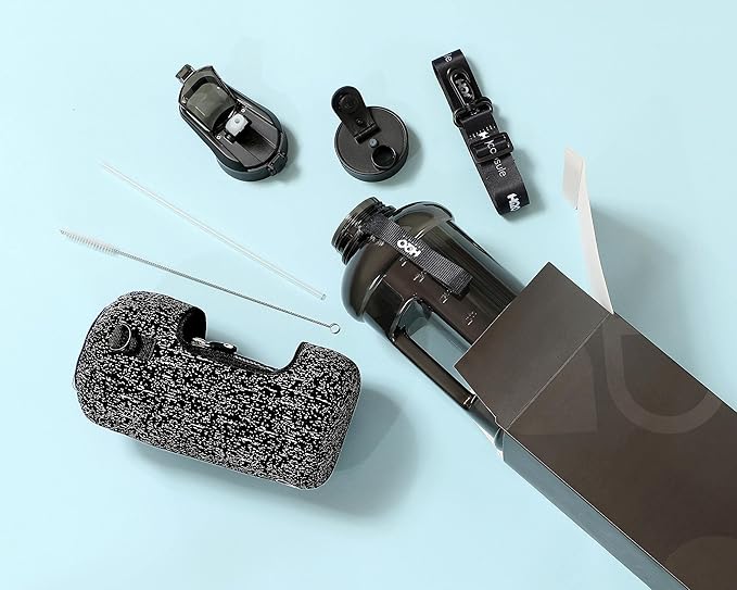 - HALF GALLON HYDRATION WITH COVERED STRAW LID: The extra large 2.2L / 74 oz plastic jug holds all the water you need to stay hydrated while you exercise. The reusable half gallon comes with a leak-proof & dust-proof covered straw lid, which helps protect the mouthpiece and flips open with a click of a button. The straw-lid is air-sealed: Run straw brush through mouth piece before initial use. The H2O Capsule bottle with storage sleeve comes with a bonus straw cleaning brush.