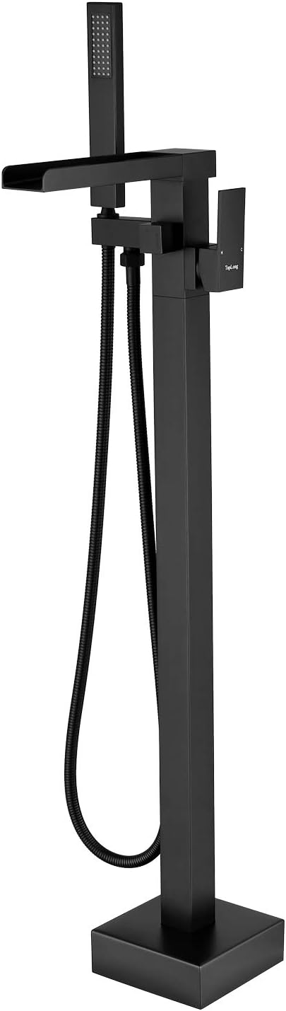 TapLong Freestanding Bathtub Faucet Tub Waterfall Filler Floor Mount Bathroom Faucets Brass Single Handle with Hand Shower High Flow Rate Max 6 GPM (Matte Black)