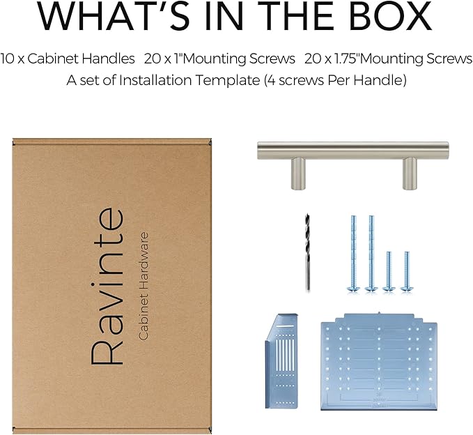 - Easy installation: brushed nickel cabinet pulls come with door and drawer templates and a drill bit. Measure the handle hole center, align the template, mark, and drill the holes. Easily install the brushed nickel hardware for your cabinets
