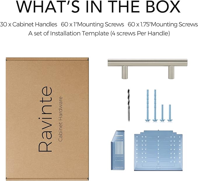 Ravinte 30 Pack | 5'' Cabinet Pulls Brushed Nickel Stainless Steel Kitchen Drawer Pulls Cabinet Handles 5”Length, 3” Hole Center with Mounting Template