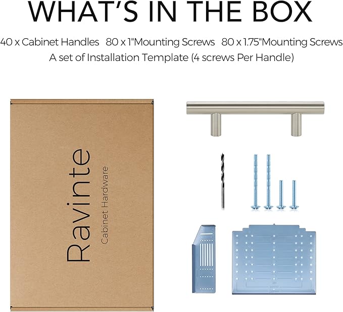 Ravinte 40 Pack | 5'' Cabinet Pulls Brushed Nickel Stainless Steel Kitchen Drawer Pulls Cabinet Handles 5”Length, 3” Hole Center with Mounting Template