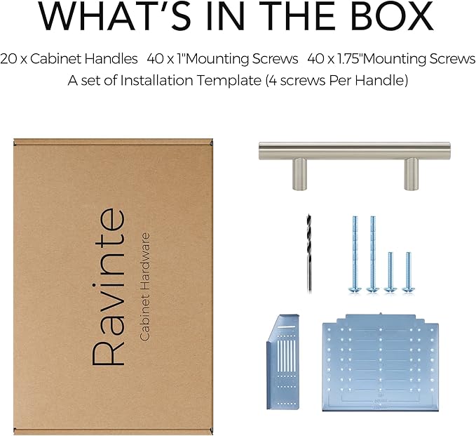 Ravinte 20 Pack | 5'' Cabinet Pulls Brushed Nickel Stainless Steel Kitchen Drawer Pulls Cabinet Handles 5”Length, 3” Hole Center with Mounting Template