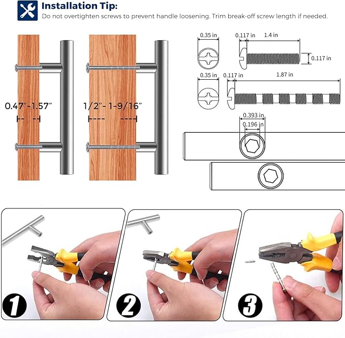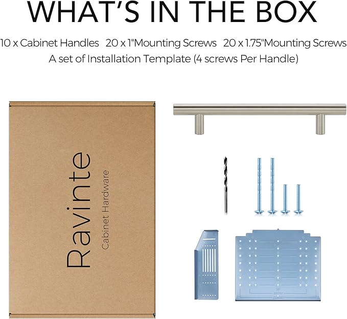 - Easy installation: brushed nickel cabinet pulls come with door and drawer templates and a drill bit. Measure the handle hole center, align the template, mark, and drill the holes. Easily install the brushed nickel hardware for your cabinets