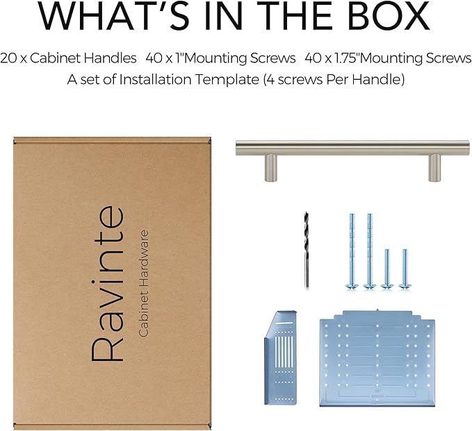 - Easy installation: brushed nickel cabinet pulls come with door and drawer templates and a drill bit. Measure the handle hole center, align the template, mark, and drill the holes. Easily install the brushed nickel hardware for your cabinets