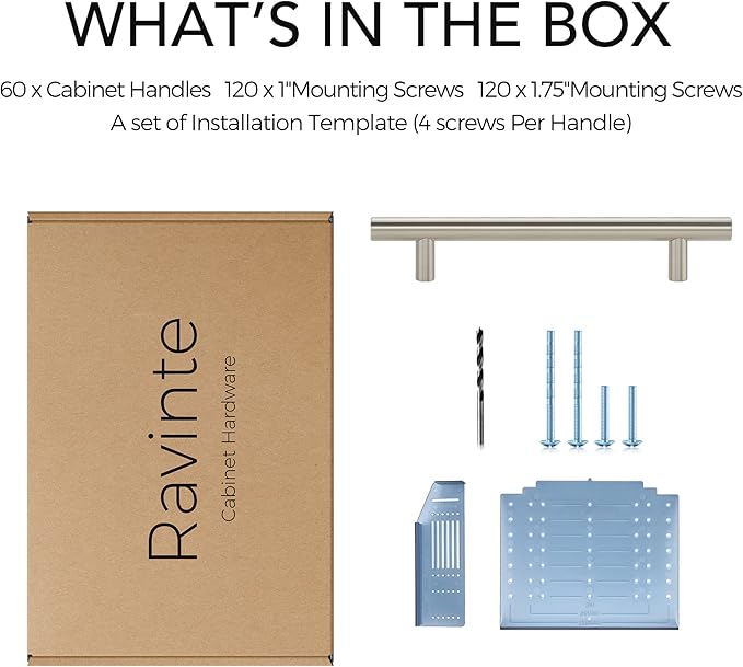 Ravinte 60 Pack | 7.38'' Cabinet Pulls Brushed Nickel Stainless Steel Kitchen Drawer Pulls Cabinet Handles 7-3/8”Length, 5” Hole Center with Mounting Template