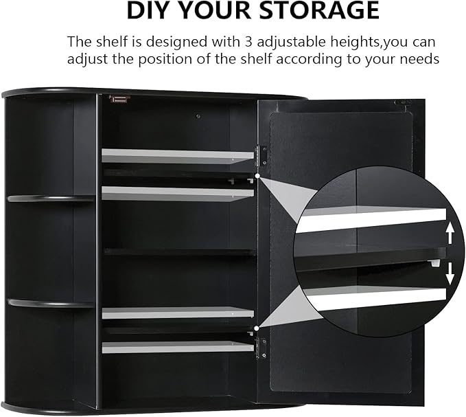 - ⭐Ample Storage Space: Need extra storage? This medicine cabinet mirror is for you! It has 2 adjustable shelves behind the mirror, keeping your tall and short items like lotion and hair products stay dry and clean. And the 6 open shelves are ideal to store hand sanitizer and other frequently-used bathroom needs, giving your bathrooms an updated look