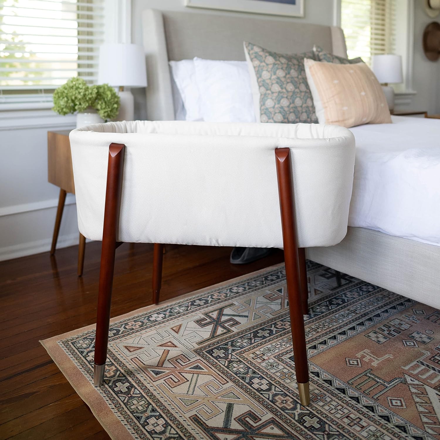 Sova Portable Baby Bassinet, Mid-Century Design with Extra Deep Walls for Newborns and Babies Safety, Includes 2 Fitted Sheets and Padded Mattress (Cream)