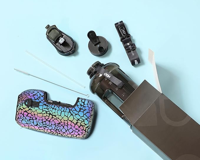 - HALF GALLON HYDRATION WITH COVERED STRAW LID: The extra large 2.2L / 74 oz plastic jug holds all the water you need to stay hydrated while you exercise. The reusable half gallon comes with a leak-proof & dust-proof covered straw lid, which helps protect the mouthpiece and flips open with a click of a button. The straw-lid is air-sealed: Run straw brush through mouth piece before initial use. The H2O Capsule bottle with storage sleeve comes with a bonus straw cleaning brush.