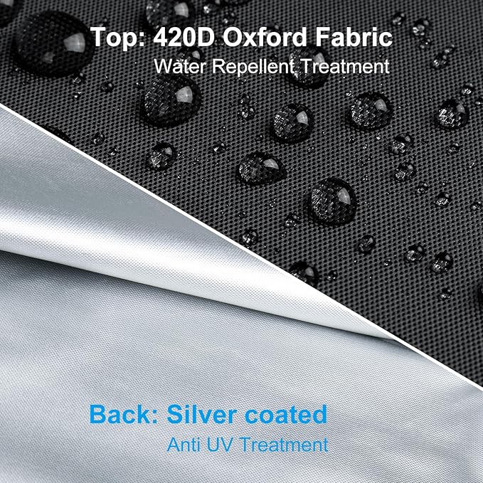 - 【Durable Material】This outdoor umbrella cover is made of 420D Oxford fabric which makes its surface is not only thicker and reliable, but also resistant to water splashing. It will protect your umbrella from any damage by rain, snow, hail, and harmful UV rays as a result of its excellent waterproof, weather-resistant and dust-proof performance. UV resistant design offers enough durability against the sunlight.