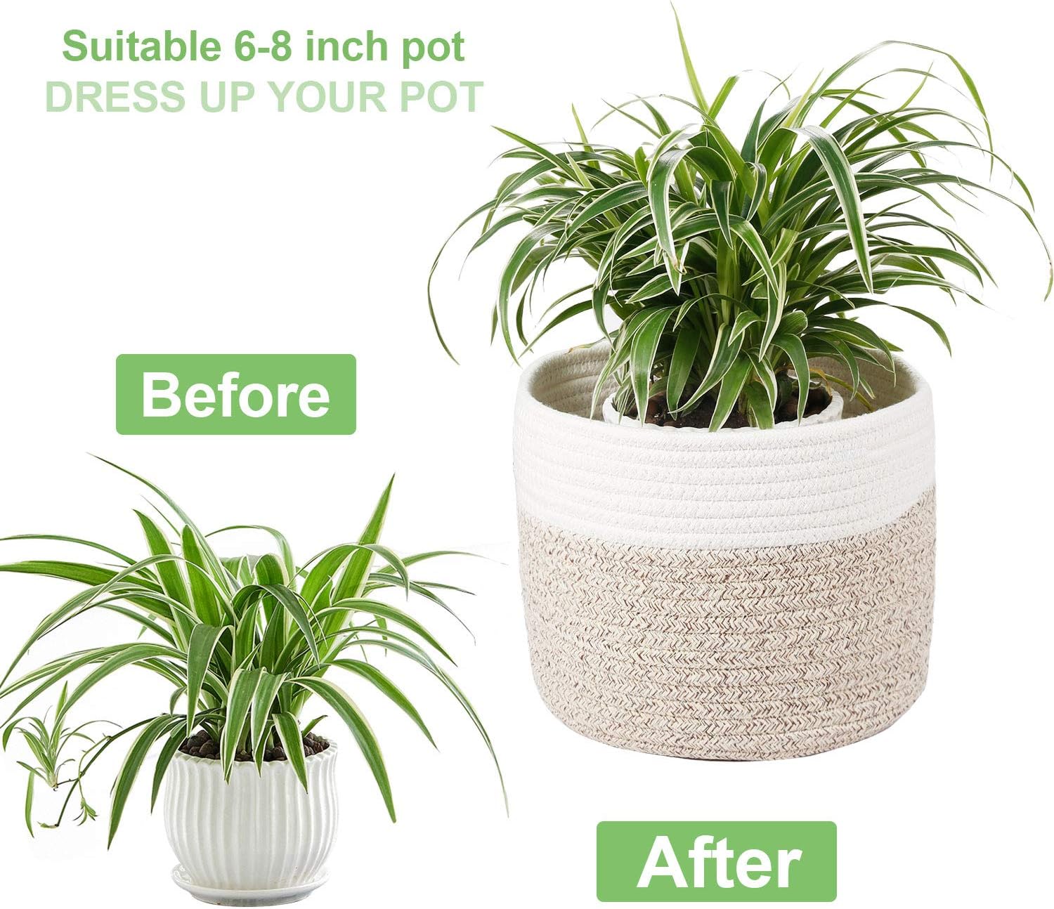 - 🌻【FITS 6"-8" PLANT POT】BEST fit 8" pot, If your favorite plants are using ordinary plastic flower pots, ceramic planter or grow bags, cotton rope pot covers will provide unique charm