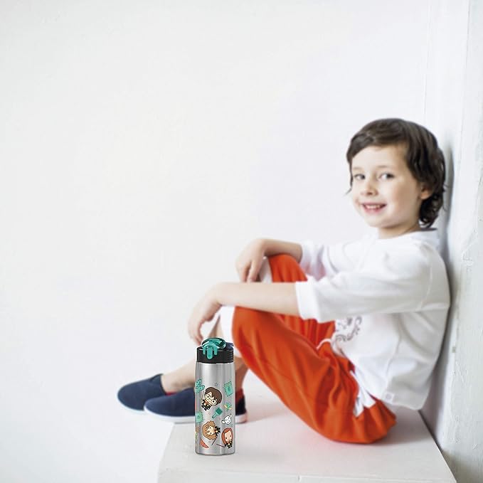 Zak Designs 27oz Harry Potter 18/8 Single Wall Stainless Steel Water Bottle with Flip-up Straw and Locking Spout Cover, Durable Cup for Sports or Travel (27oz, Harry Potter)