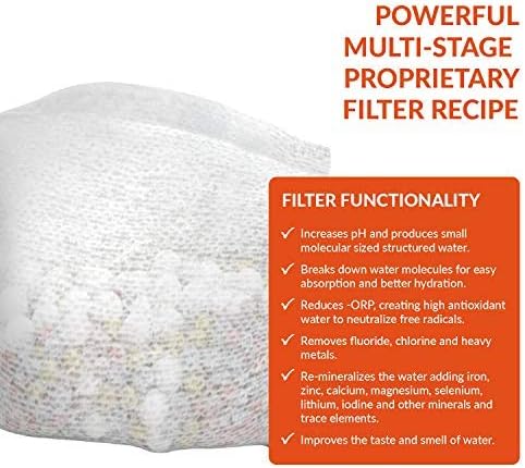 - Includes Multi-Stage 'pH On-The-Go' Alkaline Water Filter (search B076H1MXP5) - increasing water pH and -ORP, improving taste and smell, adding minerals including zinc, magnesium, selenium & iron
