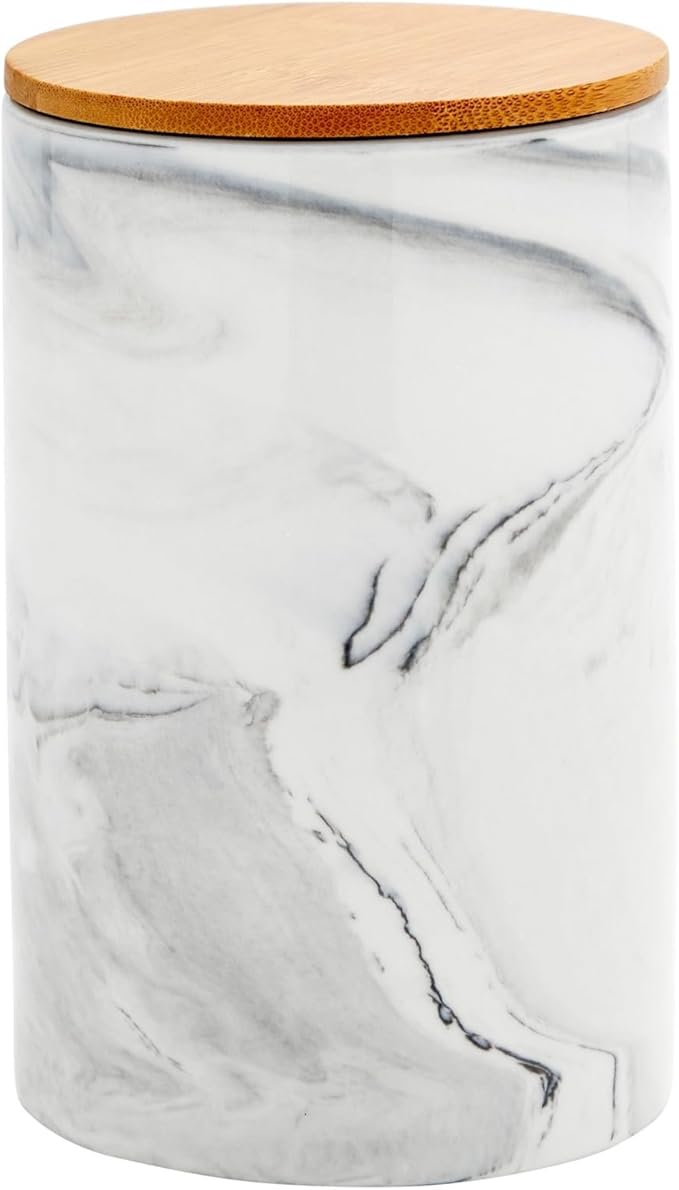 Farmlyn Creek Sugar & Coffee Container Set 3-Piece - White Marble Finish Ceramic Jar Set - Airtight Wood Lids - Ceramic Containers with Lids for Countertop Storage (5.9"/4.9"/3.9)