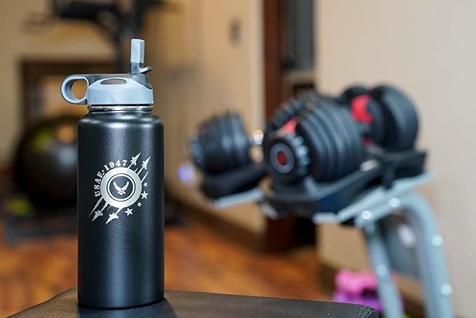 - 🛫 OFFICIALLY LICENSED USAF LOGOS: Our 32oz stainless steel water bottle comes with laser-engraved United States Air Force logos, providing authenticity and the ultimate display of Air Force pride. No need for an Air Force decal when you can have it laser etched with precision laser engraving machines.
