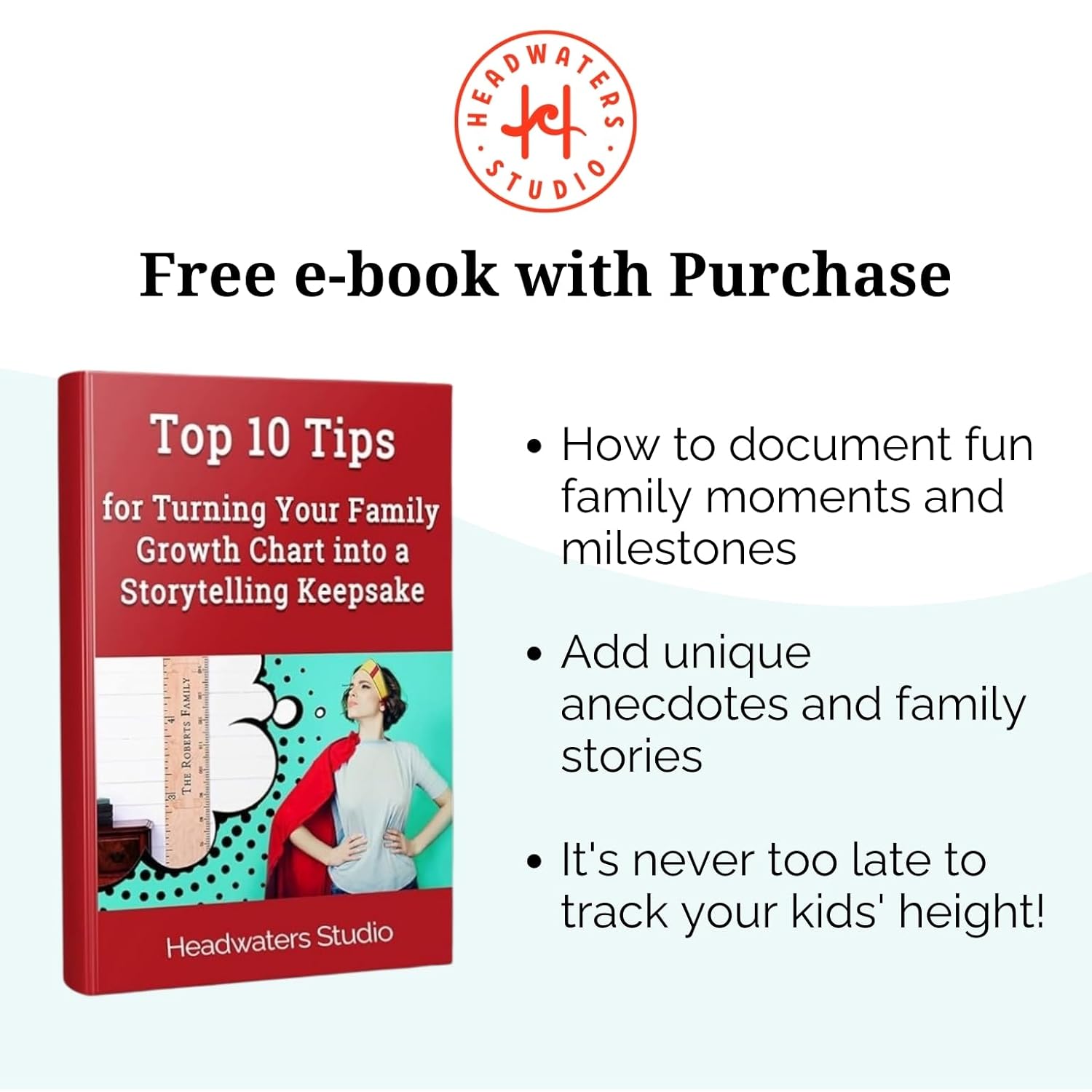 - FAMILY-SIZED MEASUREMENTS: With dimensions of 6.5 inches in width and stretching up to 6 feet 6 inches in height, our wood growth chart for wall is more than just a measuring tool. It's a family treasure trove designed to track the growth of every family member, from tiny tots to towering teens and even adults. Ideal for height measurement for kids and parents alike, this wooden ruler growth chart for kids turns every inch into a celebration of growth, making it a must-have item in your home.