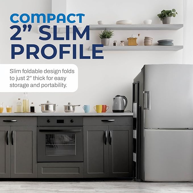 - Built from ultra-lightweight yet strong, sturdy and durable aluminum frame to meet your needs. Heavy-Duty Product Dementions CLOSED: 17” L x 2.1” W x 49.8” H. OPEN: 17” L x 24.4” W x 46.2” H. Weight Capacity: 300 lbs