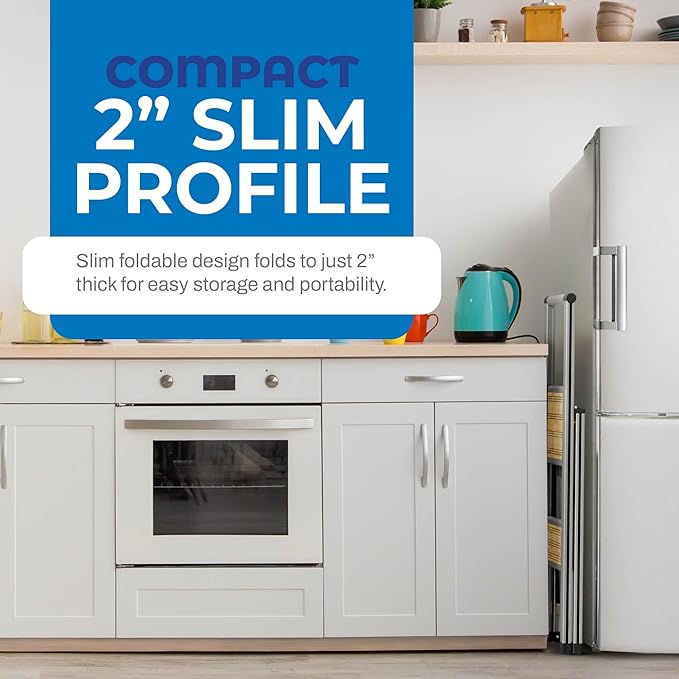 Step Ladder 2 Step Folding, Decorative - Beautiful Bamboo & Silver Aluminum, Ultra Slim Profile, Anti Slip Steps, Sturdy-Portable for Home, Office, Kitchen, Photography Use,by SORFEY