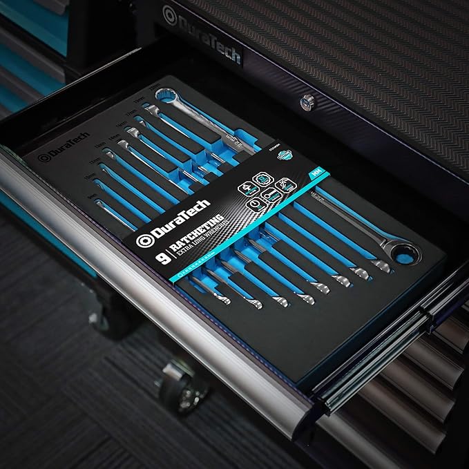 - Extra Long Box end wrench set made of premium chrome vanadium steel, Heat treated for maximum strength, Lasting durability. DURATECH 9-Piece ratchet wrench set makes emergency repairs a breeze