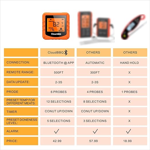 - 【6 STAINLESS STEEL PROBES】Can read the temperature within 1-3 seconds, and the accurate is +/-2 degrees with a wide range of 32℉-572℉,good for people who are on the way!