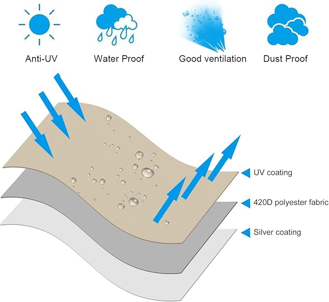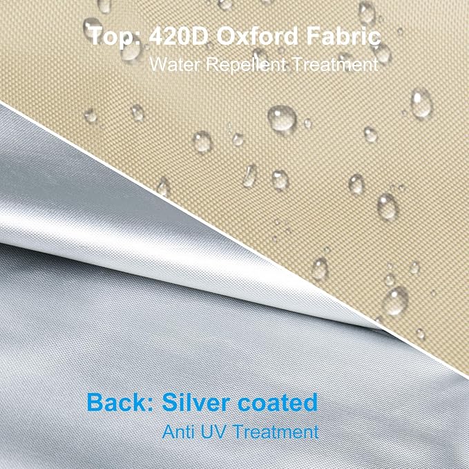 - 【Durable Material】This outdoor umbrella cover is made of 420D Oxford fabric which makes its surface is not only thicker and reliable, but also resistant to water splashing. It will protect your umbrella from any damage by rain, snow, hail, and harmful UV rays as a result of its excellent waterproof, weather-resistant and dust-proof performance. UV resistant design offers enough durability against the sunlight.