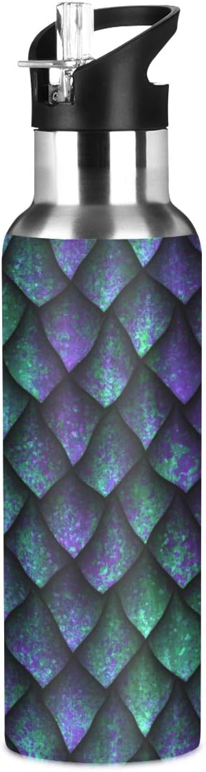 Dragon Scales Texture Stainless Steel Water Bottle with Straw, BPA Free Reusable Leakproof Water Jug for Fitness Camping Outdoor Sports