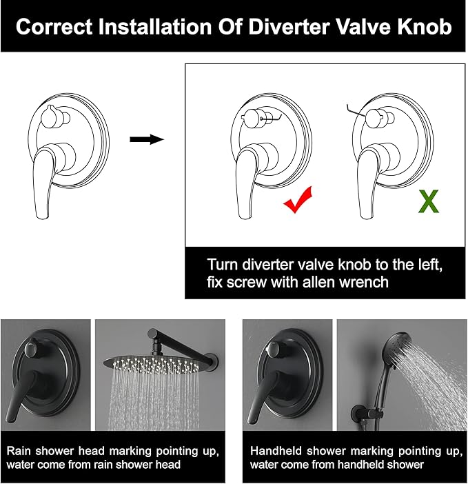 - 【Ceramic Disc Cartridge】 Smooth, long lasting drip-free operation cUPC ceramic disc cartridge, Single lever design for effortless flow and temperature control, Come with solid brass shower valve, High quality ABS 9" rainfall shower head, 5-function hand shower, 15.7"extra long shower arm, shower holder and other installation necessary parts