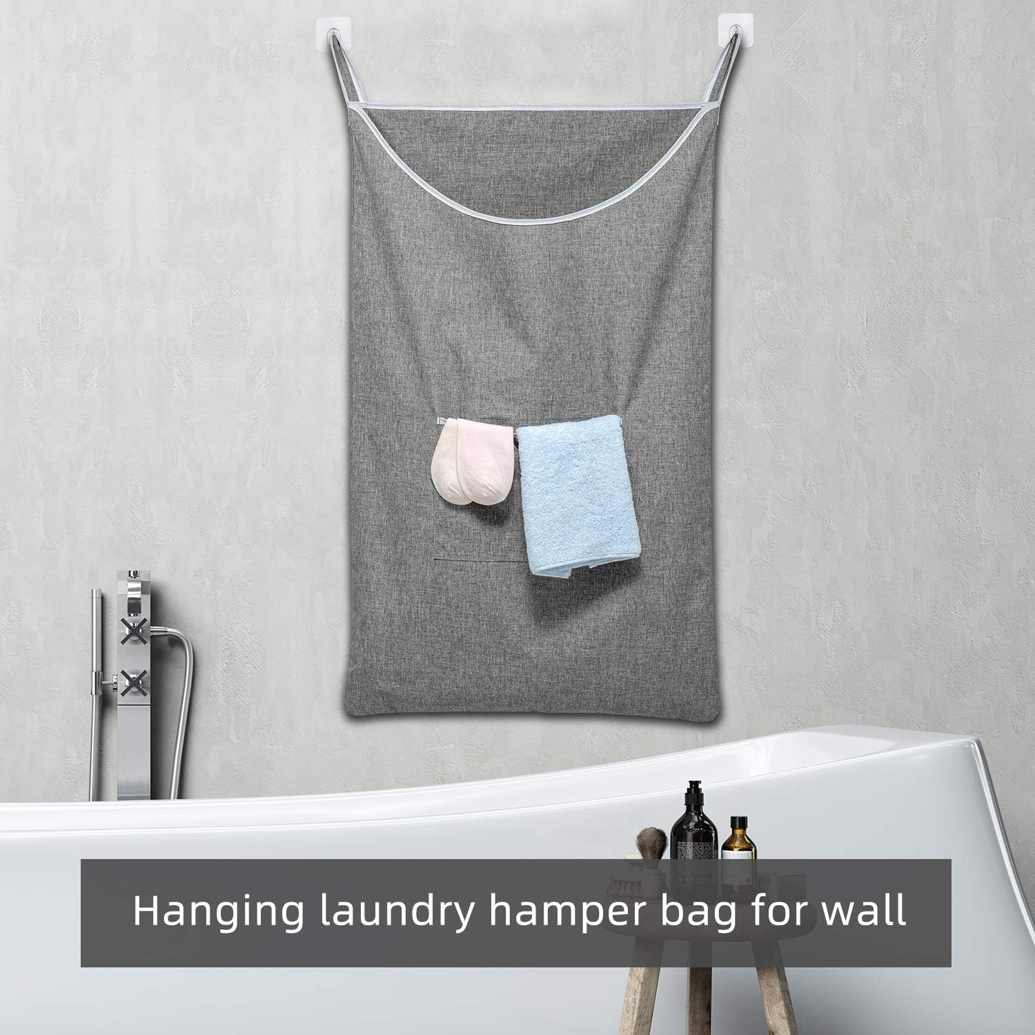 - đăConvenient and Easy to UseăThe grey hanging laundry hampers with wide opening design,easy to put your dirty clothes in it. especially for thick clothes and bedclothes. this hanging laundry bag was designed with a convenient zipper on the bottom,you can directly pull the bottom zipper to easily remove dirty clothes, let you quickly and easily unload things inside