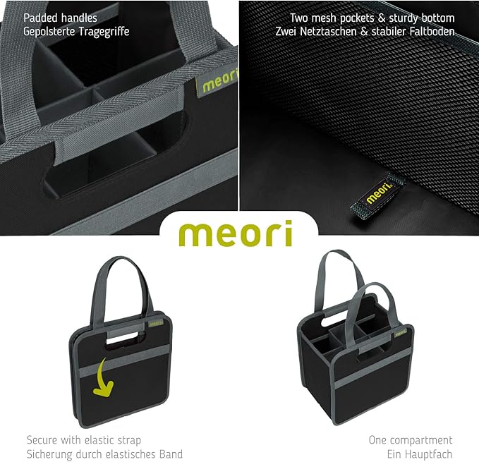 • Repurpose It - These are not just bags to carry wine. Meori’s folding carrier bag also doubles as a container for your grocery hauls or a storage bin for your cars. Its thoughtful design lets you bring your bottles or glasses to and from dinner parties or outings, too