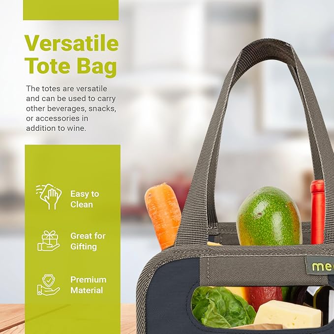 - From Wine Carrier to Tote Bag - meori's adaptable wine bottle carrier includes an adjustable padded divider to transport 6 bottles of wine, liquor, or soda without them tipping over. Not using it for bottles? Simply push the divider to the side for a practical tote.
