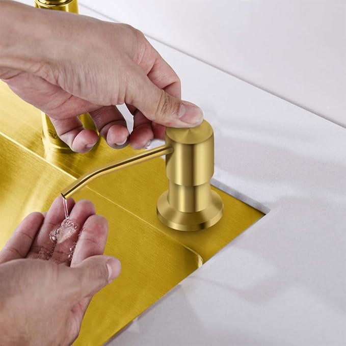 - Easy to Install -- izolor countertop soap dispensers comes with step-by-step installation instructions, works as a faucet soap dispenser, brushed steel with glair finish make it resistant corrosion&rust (Others no sealing glaze, easy to rust).