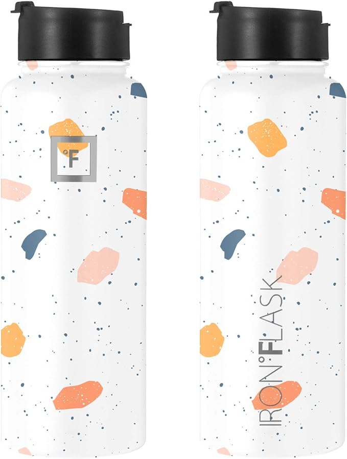 IRON °FLASK Sports Water Bottle - Wide Mouth with 3 Spout Lids - Stainless Steel Gym & Outdoor Bottles for Men, Women & Kids - Double Walled, Insulated Thermos, Metal Canteen - Terrazzo, 40 Oz