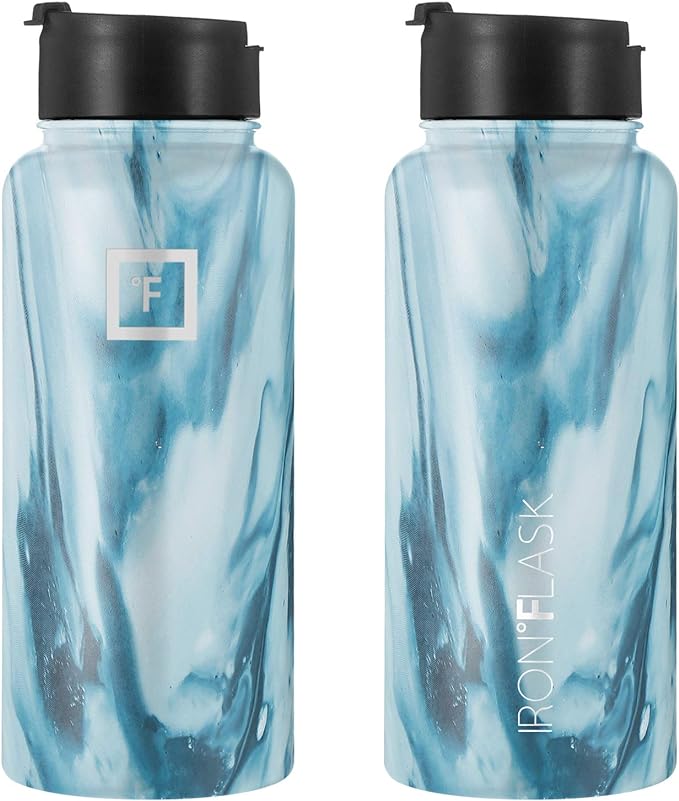 IRON °FLASK Camping & Hiking Hydration Flask, Wide Mouth, 3 Straw Lids, Stainless Steel Outdoor Water Bottle, Double Walled, Insulated Thermos, Metal Canteen - Ocean, 32 Oz