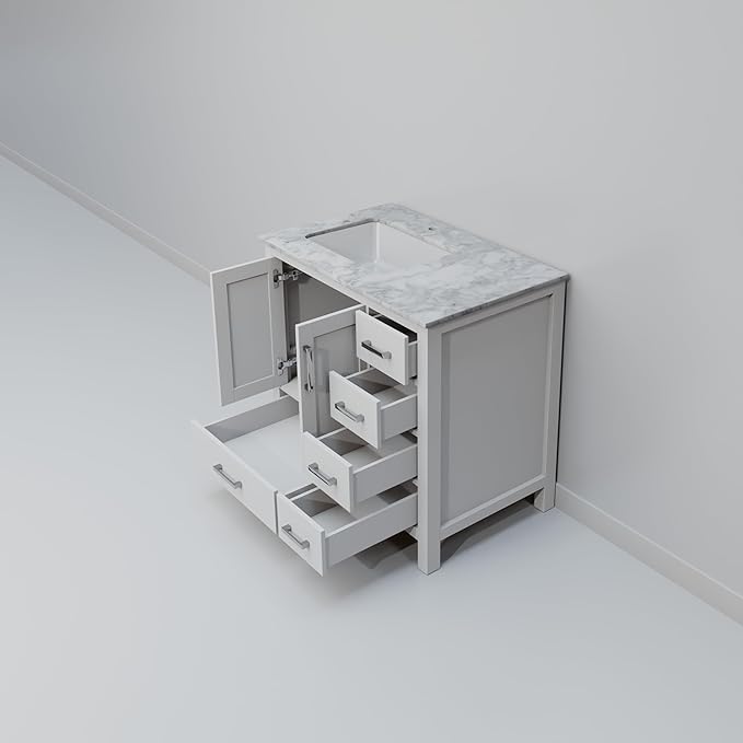 - Special Feature : Carrara Marble countertop included. Backsplash not included., Faucet not included, Vanity countertop has a scratch and stain resistant surface for lasting durability, Vanity countertop is pre-drilled for a single hole faucet for easy installation, White finish Carrara Marble countertop included. Backsplash not included., Faucet not included, Vanity countertop has a scratch and stain resistant sur… See more