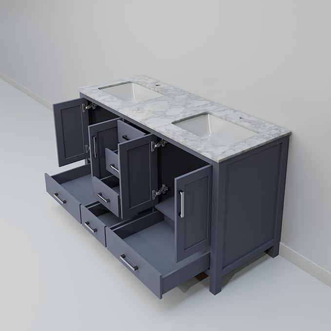 Big Sur 60 in. W x 22 in. D Dark Grey Double Bath Vanity and Carrara Marble Top
