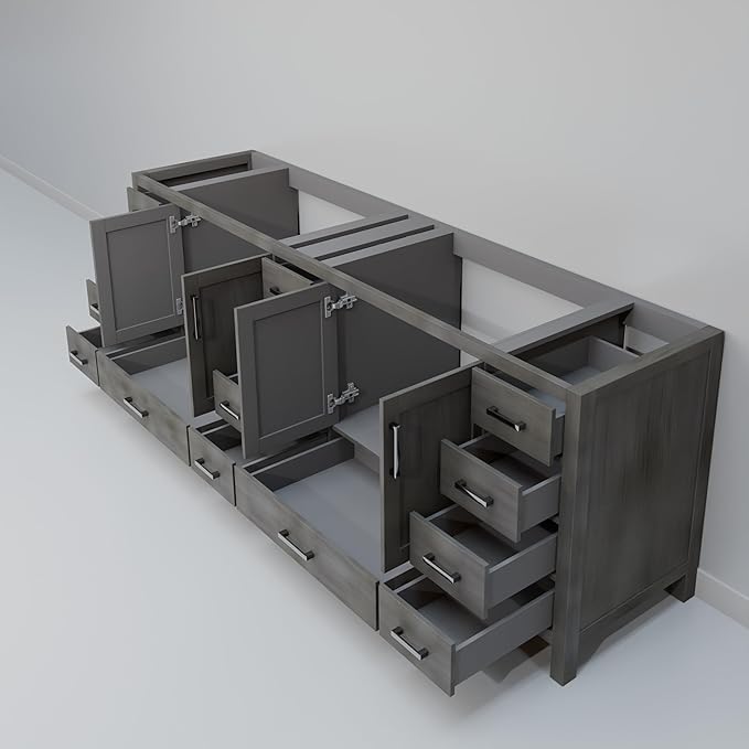 - Cabinet dimensions are 83 in W x 22 in D x 33.5 in H, Fully assembled vanity cabinet for quick and easy installation