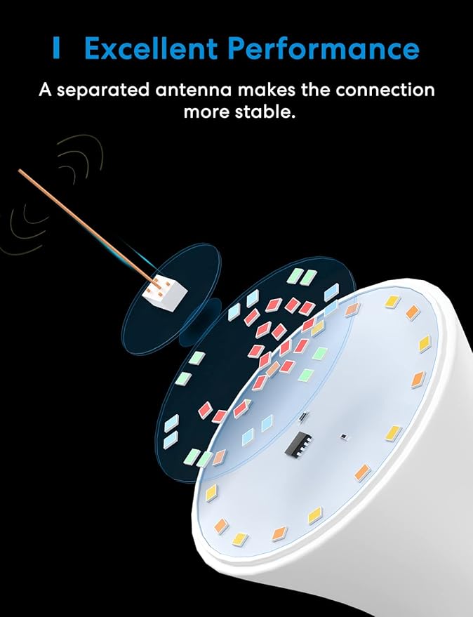 - Upgraded LED Light Bulb: The Meross LED bulb is an excellent upgrade from the previous version, offering 900LM warm white light, a separate antenna for stronger Wi-Fi signal and network stability, and increased LEDs for brighter light and more vibrant colors. With this bulb, you can enjoy a better lighting experience.